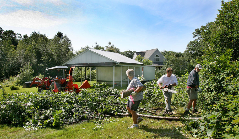 Chris Chase, of West Swanzey, stands next to a 12 and one half inch Newtonian reflector telescope designed and built by the astronomy club. He was replacing the finder scope on the telescope at the club's Sullivan Observatory. In the foreground is a 9 and one quarter inch Schmidt-Cassegrain reflector telescope. [Photo taken by Michael Moore of the Keene Sentinel Staff]